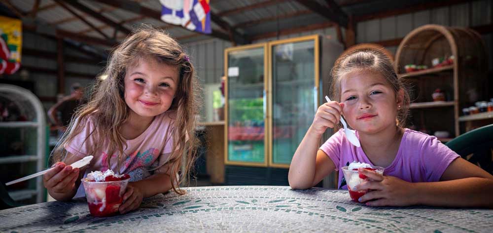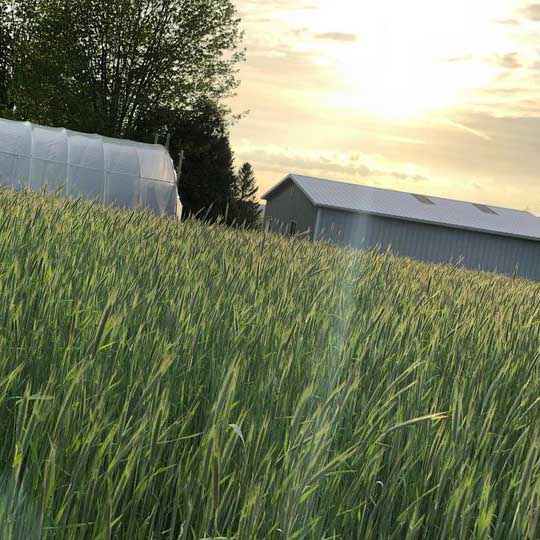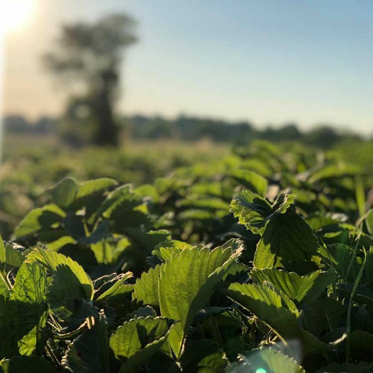 A freshly-planted strawberry plant in the foreground. We're excited about the upcoming season and look forward to seasons to come as we're implementing some sustainable farming practices—improved soil, better organics, and better end product.